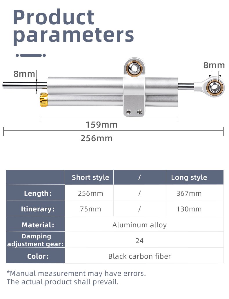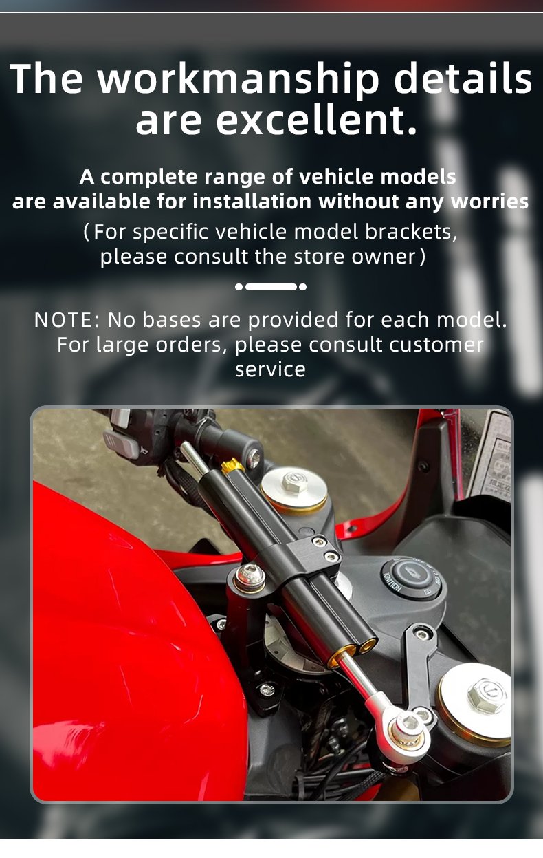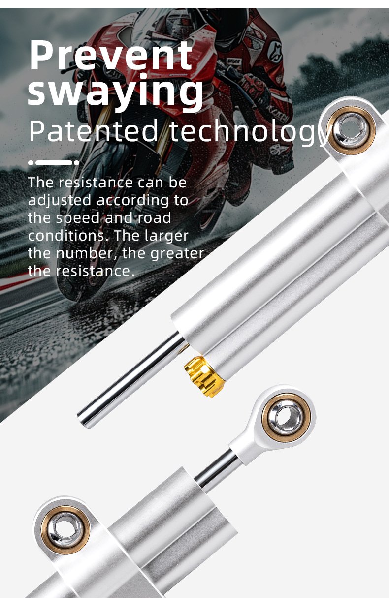 • 【Speed-Sensitive Technology】The complete damping system of the motorcycle steering shock absorber uses speed-sensitive technology to help maintain safe control and reduce fatigue. Especially designed for sports or road racing, it can reduce the fatigue of riders, eliminate head shaking, and improve knee time.