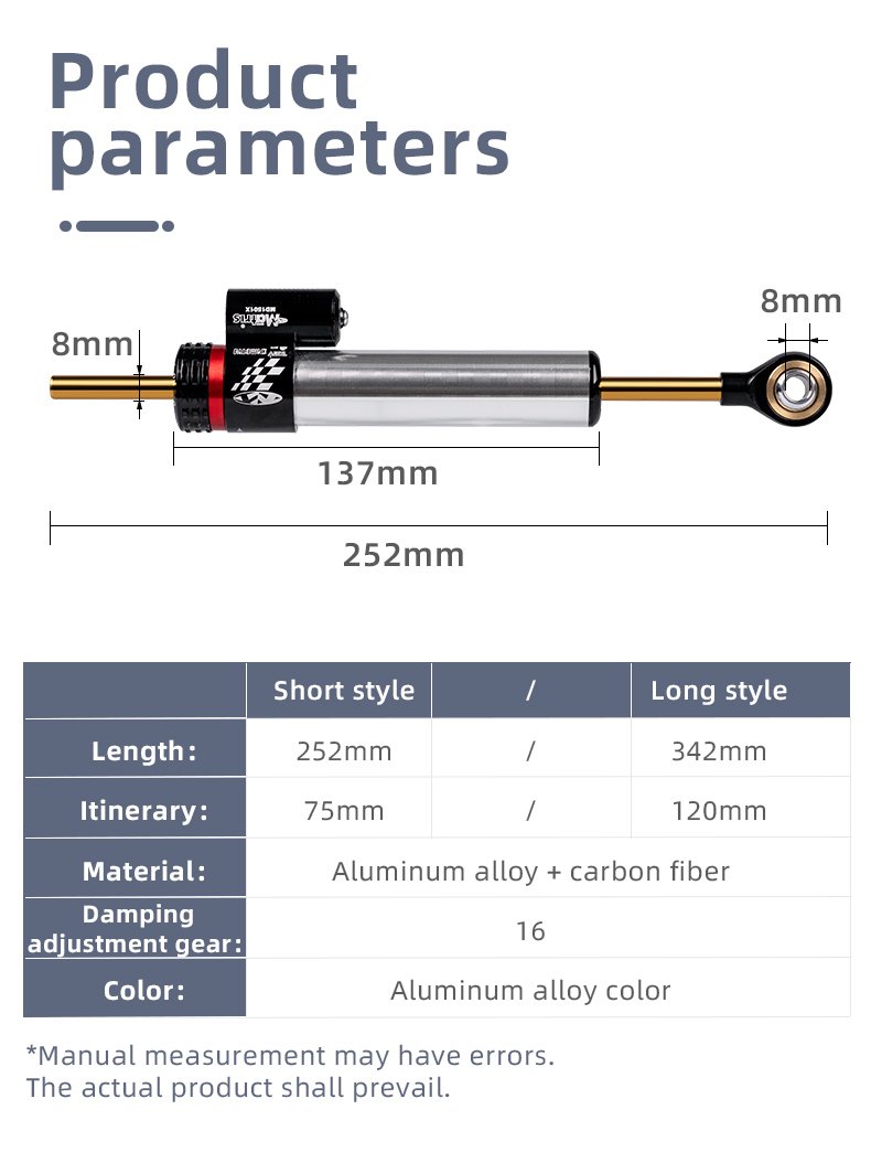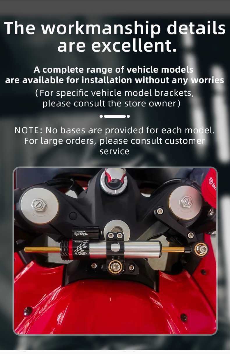 • SIMPLE INSTALLATION: This motorcycle steering damper stabilizer is easy installation, no any modification required. With its universal design, it can be easily installed on most motorcycles, giving you the peace of mind that you need when navigating through corners and rough terrain