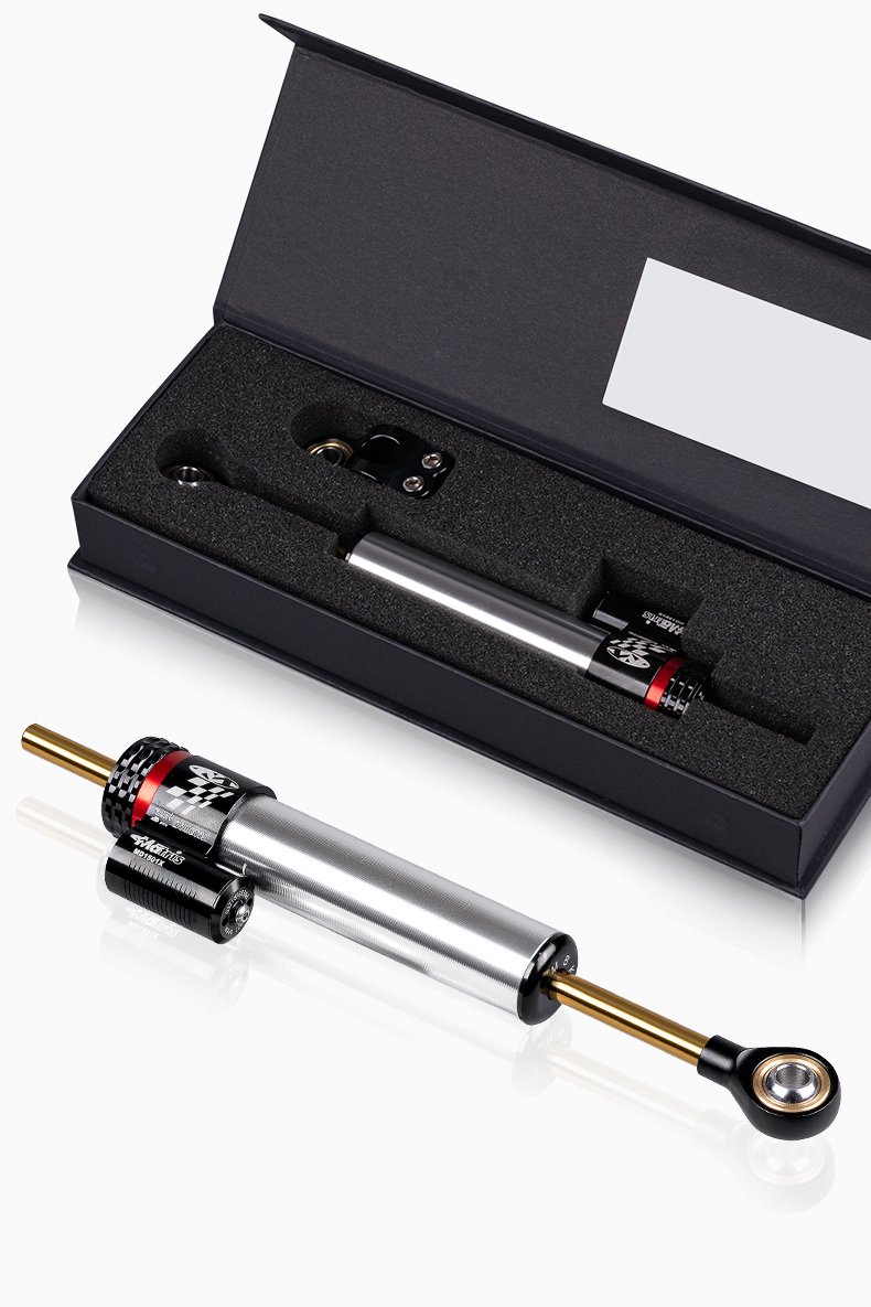 • HIGH PERFORMANCE: Made by ultra precision machine cut for super light weight construction, high precision and quality. This motorcycle steering damper is a great investment for anyone who takes their motorcycle riding seriously and wants to improve their performance on the road