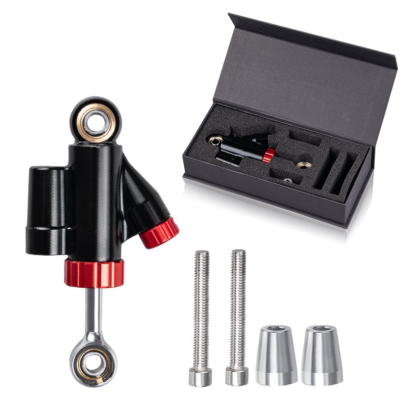 Universal Steering Damper Stabilizer, Linear Reversed Control, Speed sensitive Technology, for Most Motorcycles, Aluminum-SHORT