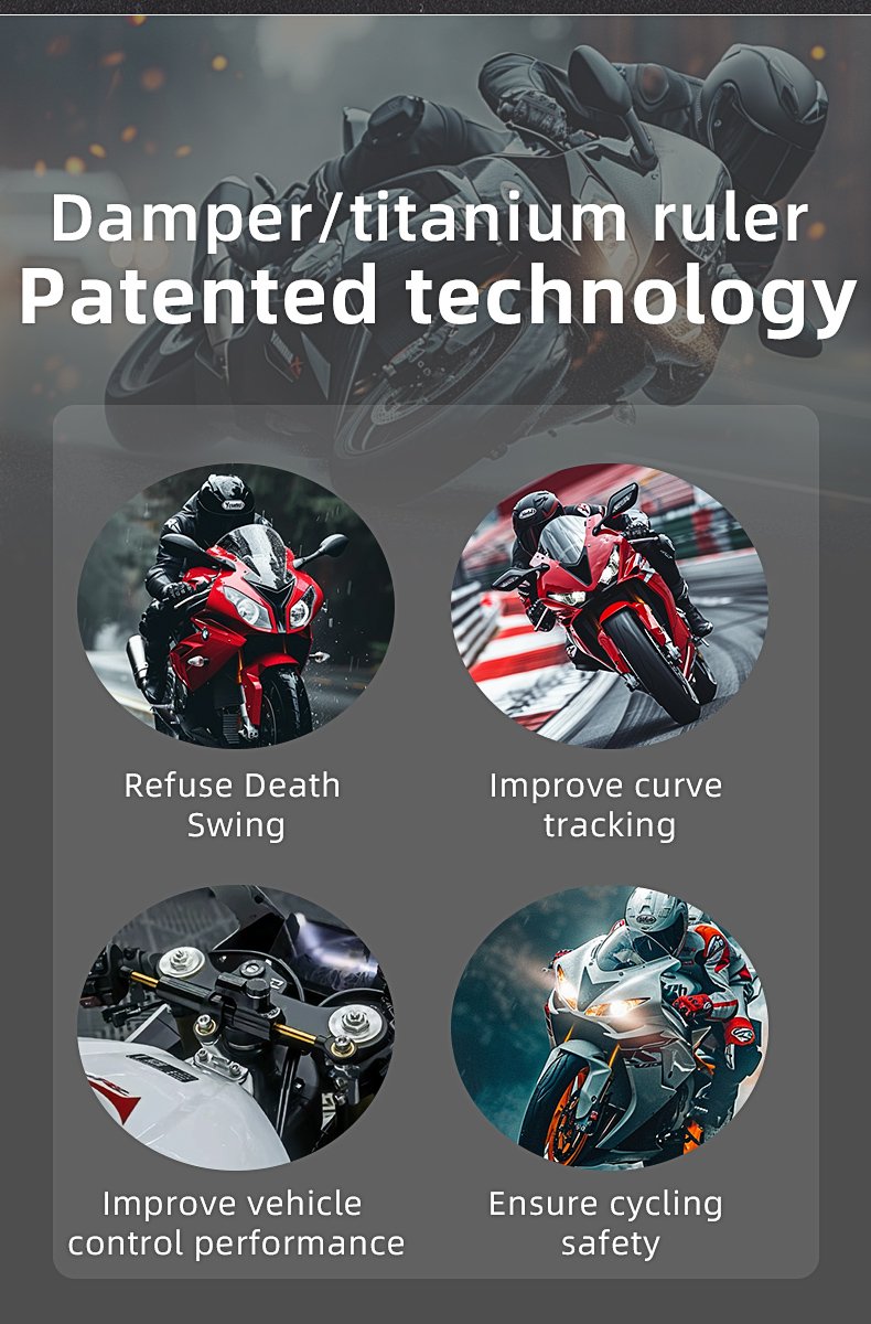 - Utilizing Velocity Sensing Technology, our complete damping system stands at the forefront of innovation. This advanced technology responds to the speed of your motorcycle, providing ample damping capabilities as needed to ensure stable control. It effectively reduces fatigue during long rides, enhancing your overall riding experience.