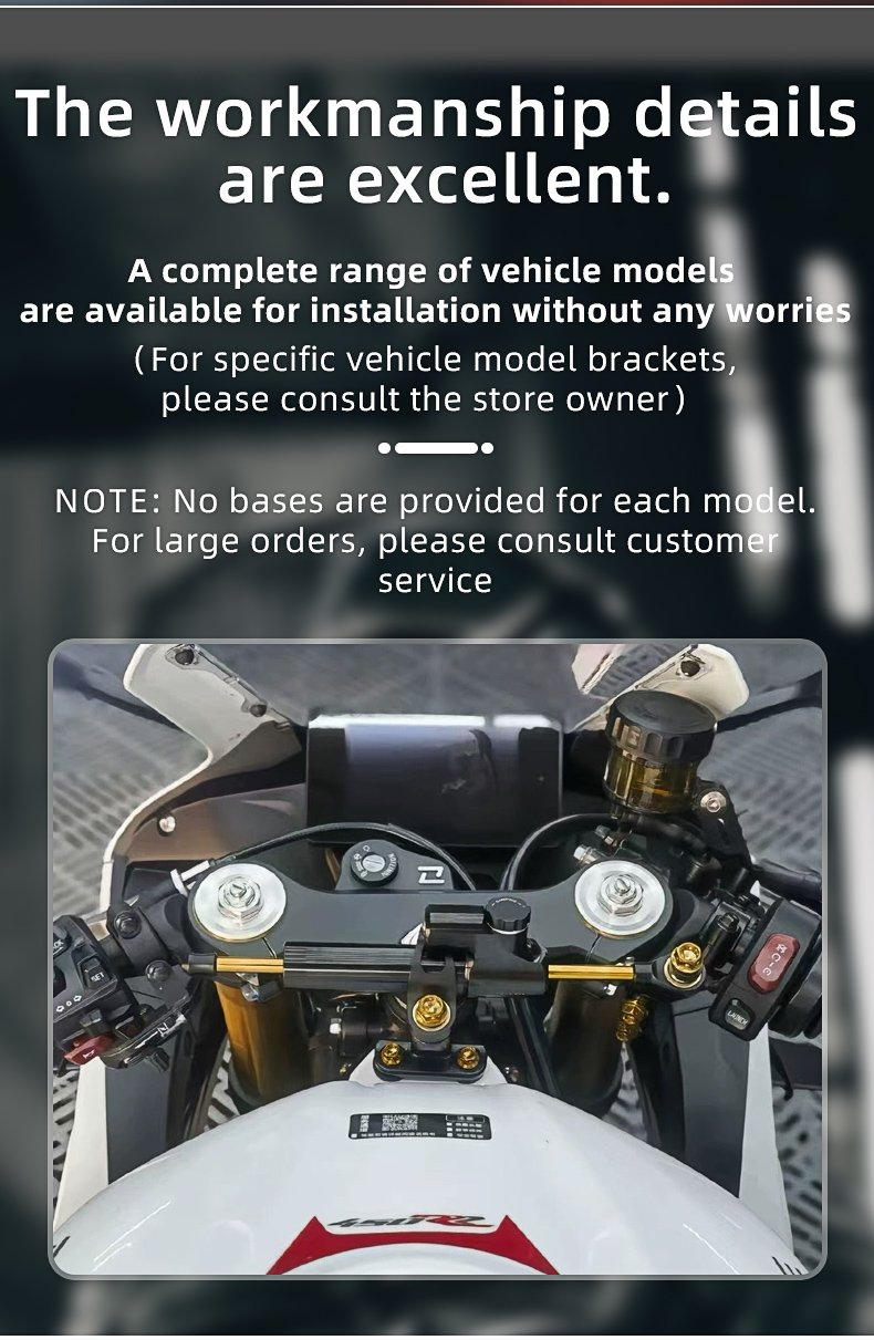 - Designed for optimal compatibility, our steering damper conveniently fits most motorcycles without requiring any modifications. Its easy-to-install design prompts a hassle- retrofitting process, saving you valuable time and effort in enhancing your bike’s steering control.